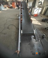 旋转式皮带输送机其结构是在平形橡胶运输带两侧粘上可自由伸缩的橡胶波形立式"裙边”, 在裙边之间又粘有一定强度和弹性的横隔板组成匣形斗,使物料在斗中进行连续输送。挡边带式输送机可广泛用于煤炭、粮食、建材、化工、水电和冶金等部门,在环境温度为- 19°C ~ +40°C范围内,输送堆积比重为0.5-2.5t/m3的各种散状物料。对于输送有特殊要求的物料,如高温、具有酸、碱性、油类物质或有机溶剂等成分的物料,需采用特殊的挡边输送带。